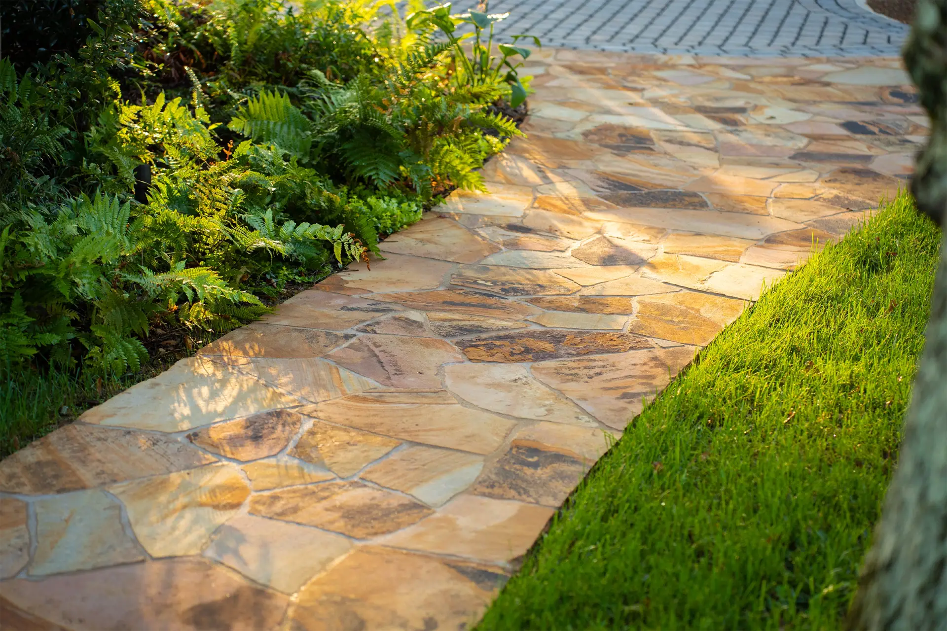 For Helen & Kevin in Greenville, SC, our custom plans refreshed their front courtyard with a thermal bluestone patio, dynamic plantings, repaired water feature, and landscape lighting—ensuring low-maintenance elegance. Helen & Kevin shared, “We absolutely love how everything turned out. The process was smooth, the team was on point, and the quality was top-notch. It really transformed the front of our home.”